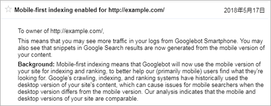 ■米Google 、MFI(モバイル ファースト インデックス)への移行開始の通知を確認