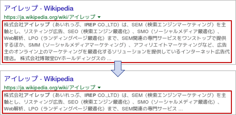 ※Google 検索(www.google.com)にて「アイレップ」の検索結果の表示例