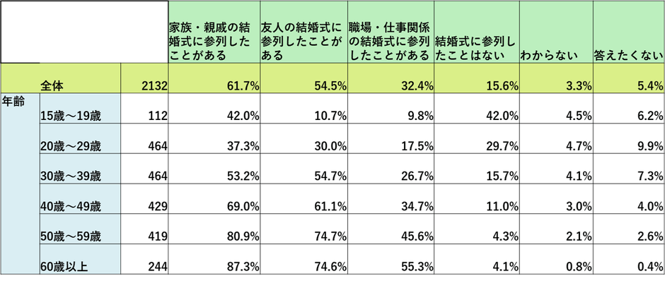 ・調査対象 :16~79歳、男女、過去1回以上結婚式に参列経験のある方