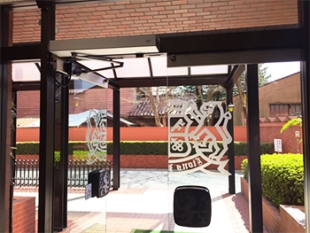 そこで、弊社がご提案したのは、「ドアの電動アシスト化」でした。エントランスのドアにドルマカバ社製のスイングドアオペレーター ED-100を設置して、自動化することです。さらに建物の中へ進むと鍵を使って解錠する自動ドアがあるのですが、ここもカードをかざすだけで、ドアが開閉できるようにするということでした。