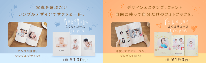 ▼1冊100円から作れるフォトブック。選べるコースは2種類。