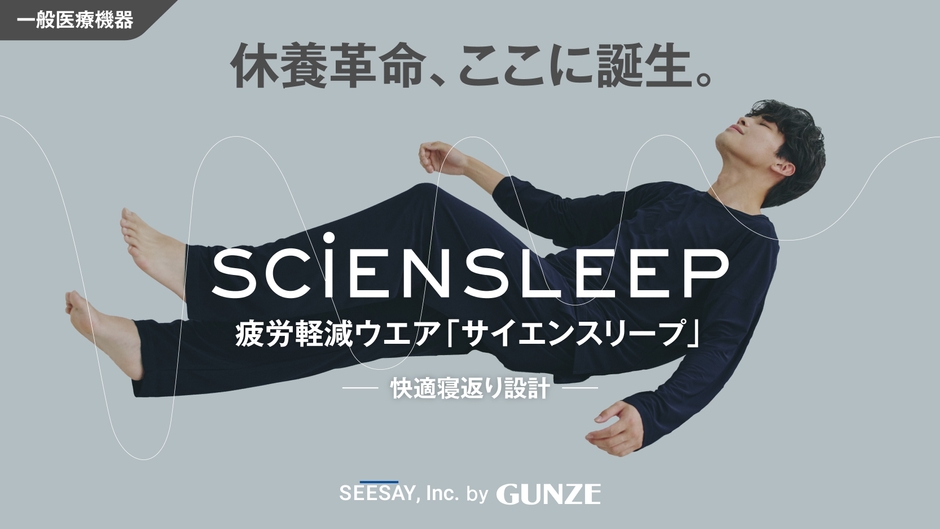 グンゼ株式会社(本社:大阪市北区、社長:佐口 敏康、以下 グンゼ)の100%出資子会社である「株式会社SEESAY(シセイ)」(本社:東京都渋谷区、社長:奥田 洋一)は、応援購入サービス「Makuake」にて疲労軽減ウェア「SCiENSLEEP(サイエンスリープ)」のプロジェクトが目標金額3,000%を達成したことをお知らせいたします。本プロジェクトはサポーター1,000名様をネクストゴールに設定し、2024年11月29日(金)まで継続して実施します。
