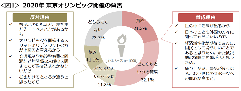 東京オリンピック開催 賛成派は約5割 「景気回復・レベルの高い競技観戦」を期待しつつ、 「犯罪の増加・財政負担」を不安視する声も