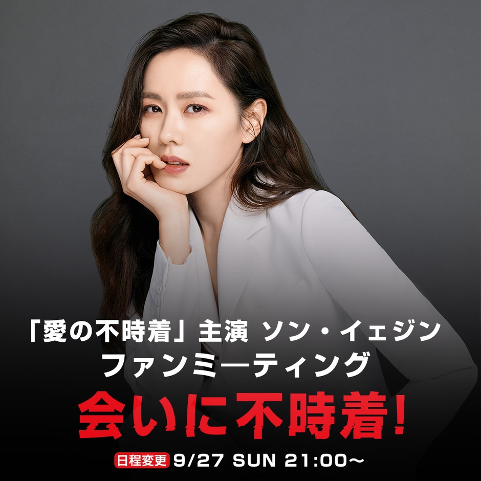 株式会社インタラクティブメディアミックス(IMX、本社:東京都品川区、代表取締役社長:孫一亨)はドラマ「愛の不時着」「よくおごってくれる綺麗なお姉さん」など多くの作品に出演している人気女優、ソン・イェジンのオンラインファンミーティング「会いに不時着」の開催を、8月30日(日)から9月27日(日)に延期させていただく運びとなりました。