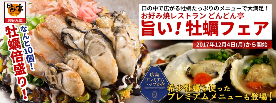お好み焼きレストラン どんどん亭(本社:Miコーポレーション株式会社/福岡市博多区)は、2017年12月4日(月)より『旨い!牡蠣フェア』を開催いたします。