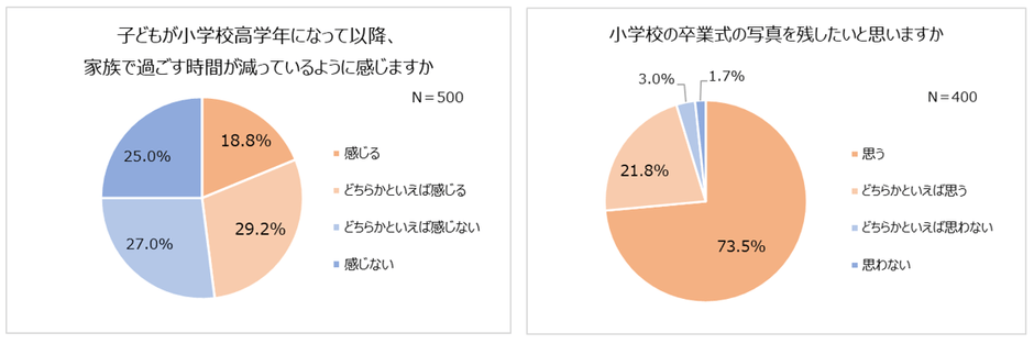 株式会社スタジオアリス(本社:大阪府大阪市、代表取締役社長:牧野 俊介)は、小学生の子どもを持つ男女400名と、中学生の子どもを育てた経験のある男女100名を対象に、「小学校の卒業と家族時間に関する調査」を実施しましたので、結果をご報告します。
