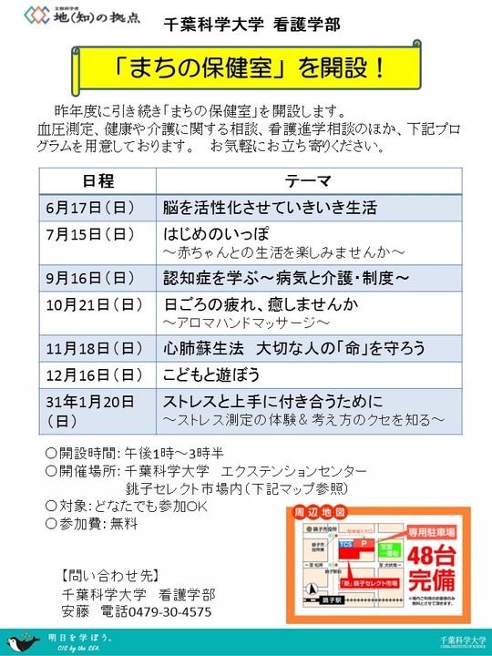 ○問い合わせ先:千葉科学大学看護学部 安藤(電話0479-30-4575)