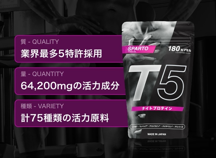「スパルトT5」とは、活力低下や男としての自信やパフォーマンス低下の改善を目的として科学に基づき開発されたサプリメントです。