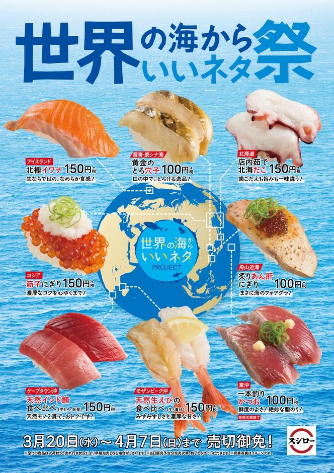 『世界の海からいいネタ祭』は、3月20日(水)~4月7日(日)まで 全国のスシローにて開催するんです