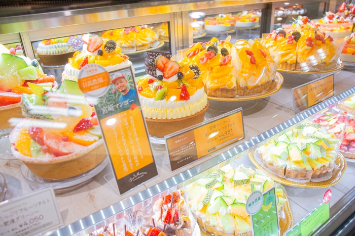 厳選した旬のフルーツをパティシエこだわりのレシピで手作りした自慢のタルトなど、こだわりとオリジナリティーが詰め込まれたショーケース。