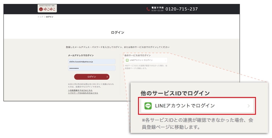 このような環境を鑑み、当社の会員登録情報とLINEの会員情報を連携させることで、より多くのお客様にゆこゆこネットを利用していただけるよう、新規会員登録率の向上や再ログイン時の利便性向上を最大の目的とし、ソーシャルログインを実装しました。現在はLINEのみの機能となりますが、今後はFacebookなどLINE以外のSNSログインも順次追加予定です。