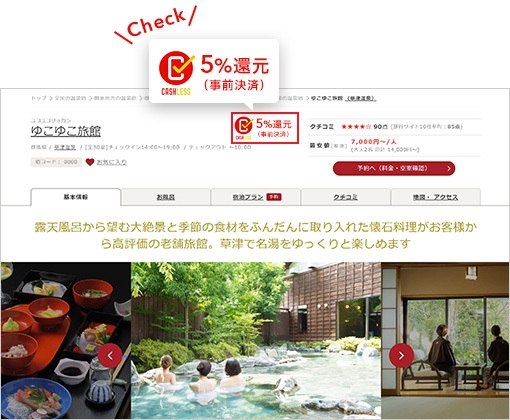 5%還元対象の宿情報ページ
