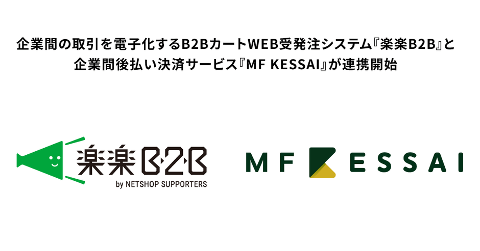 株式会社ネットショップ支援室(本社:東京都新宿区、代表取締役:泉 成人)が提供する、企業間の取引を電子化するB2BカートWEB受発注システム『楽楽B2B』は、MF KESSAI株式会社(本社:東京都千代田区、代表取締役社長:冨山 直道 )が提供する企業間後払い決済サービス『MF KESSAI』との連携を2020年7月27日(月)に開始しました。