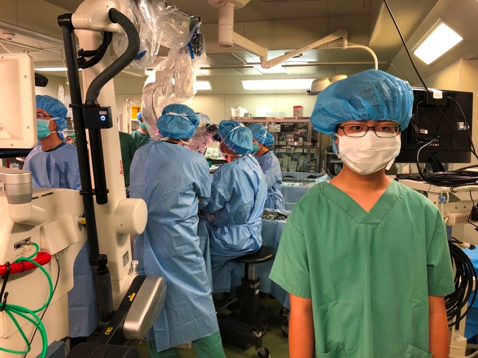 10月26日(土)、鹿児島県の厚地脳神経外科病院で外来対応や手術の見学を行い、脳神経外科医としての心構え等を学びました。体験した中学生からは、「憧れであり目標でもある福島先生のお話を聞いたり、手術を見せてもらったり、例えるなら金色の一日でした。先生が患者さんに笑顔で寄り添いながら診察されている姿や、血液一滴を大事にしながら手術をされている姿が印象的でした。先生から、『一に努力、二に努力、三に努力、四も努力』『人生は勉学』と、努力することが何よりも必要だということを学びました。これから、この事を頭の中に入れて、夢に向かって頑張ります!」などの感想がありました。