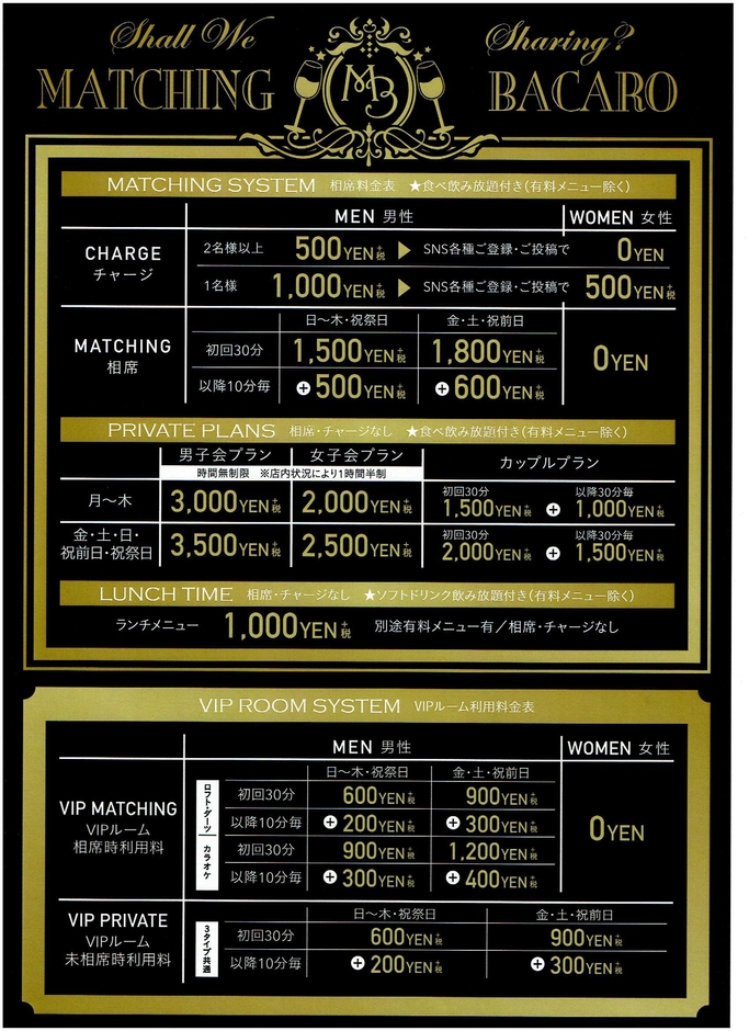 相席酒場・通常の居酒屋プランをお客様が選択できる新しい業態となっており、カラオケ・ダーツ・ロフト・カウンター・TV・ゲーム・DJブース・プロジェクター・Wi-Fi・コンセント・iPadによる映画&雑誌鑑賞・ビュッフェ・ドリンクバー・フルーツバーなど全く新しいエンターテインメント溢れるお店となっております。