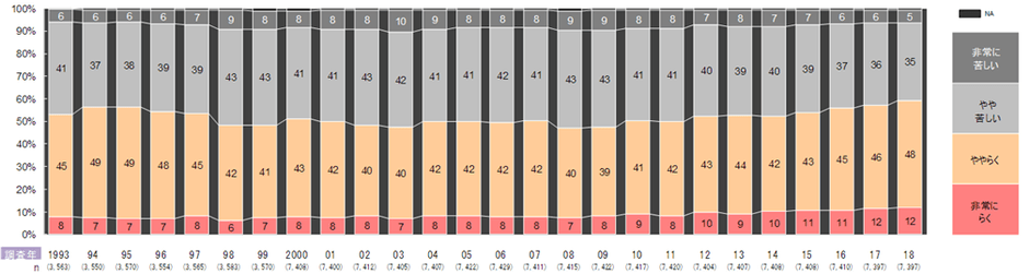 <調査レポート> 「四半世紀の生活者の変化をみる」 現在の暮らし向き“非常にらく+ややらく”が 1993年53% → 2018年60%に