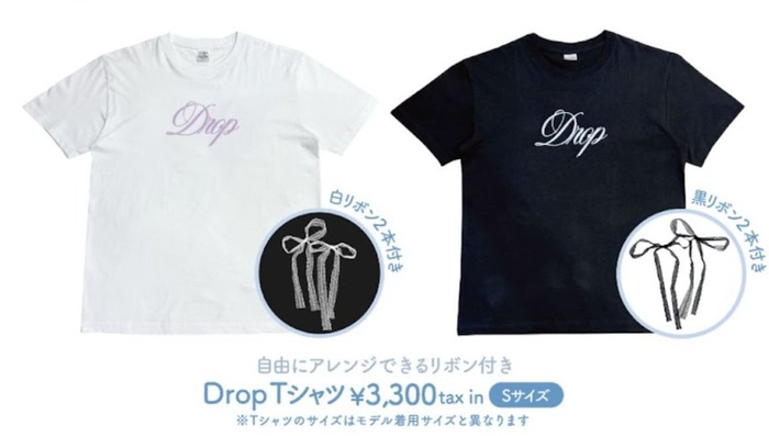 DropTシャツ(どちらか1点)とチャーム付きシュシュをセットでご購入いただく毎に、4cut photoをプレゼント!