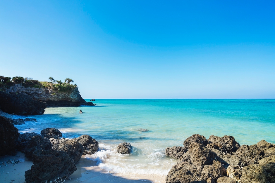 岩に囲まれた非日常空間と、目前に広がる絶景