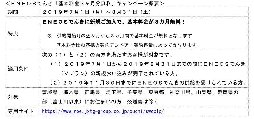 当社(社長:大田 勝幸)は、7月1日(月)から8月31日(土)の間、東京電力エリア(一部エリアを除く)にお住いの皆さまを対象に「ENEOSでんき」の新規お申込みキャンペーンを実施しますので、お知らせいたします。