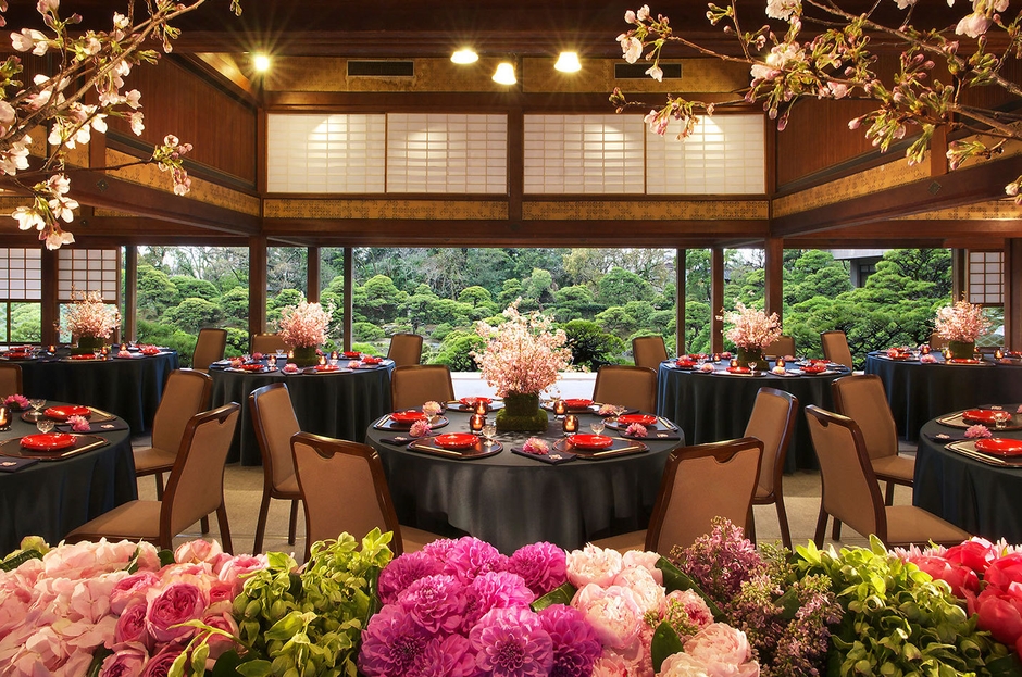 かつて国内外の要人を迎えた柳川藩主立花邸御花は、300年の時を紡ぐ国指定名勝の藩主邸であり、現在は結婚式場としても利用されています。今回100年ぶりに改修された「大広間」は明治時代に建てられた総木曽檜造りで日本庭園「松濤園」を眺めながら結婚式が行える会場です。