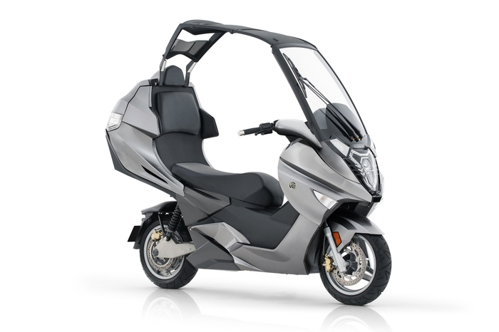 高速走行やタンデムでも余裕の走りを実現する大型2輪EV。ダイレクトな加速感や軽快かつ安定したハンドリングなど、電動バイクならではのライディングの楽しさが魅力。ワイパー付きスクリーン、開閉式ルーフを備え、天候に左右されることなく、ライダーを快適に目的地まで運んでくれます。リアトランクは90Lの大容量で、ヘルメット2つを余裕で収納します。