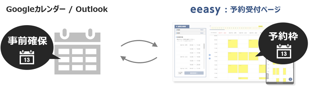 株式会社E4(所在地:東京都千代田区、代表取締役社長:杉本 太一朗)は、運営する日程調整ツール「eeasy」(イージー)において、Googleカレンダー・Outlook予定表上で事前確保しておいた予定を使用し、登録済の予定と連動して予約が受付けられる機能を、本日より提供開始しました。