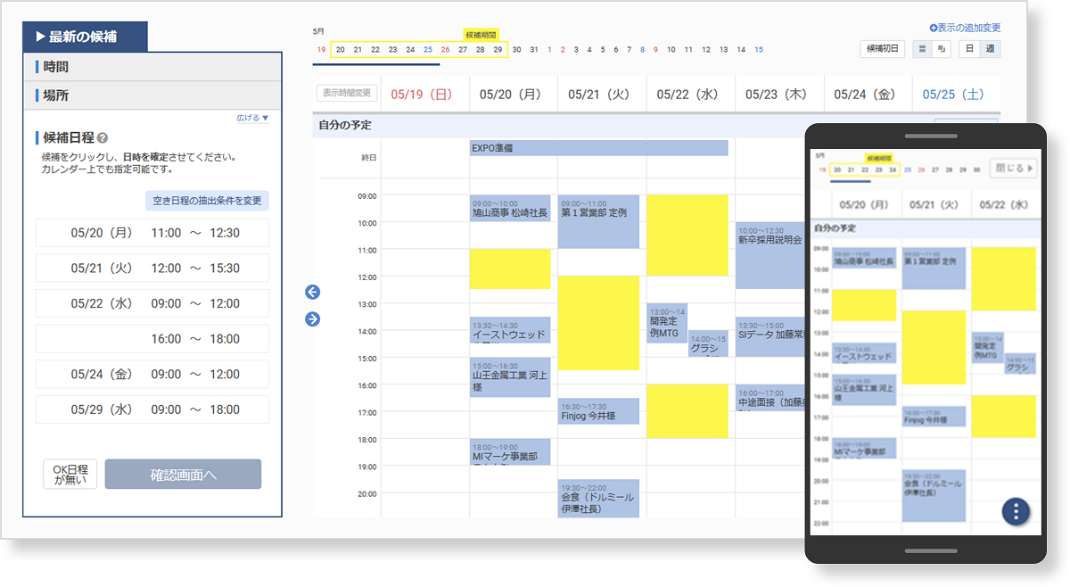 さらに、各日程はカレンダー上の予定と連動するため、以下のような予約管理ができます。