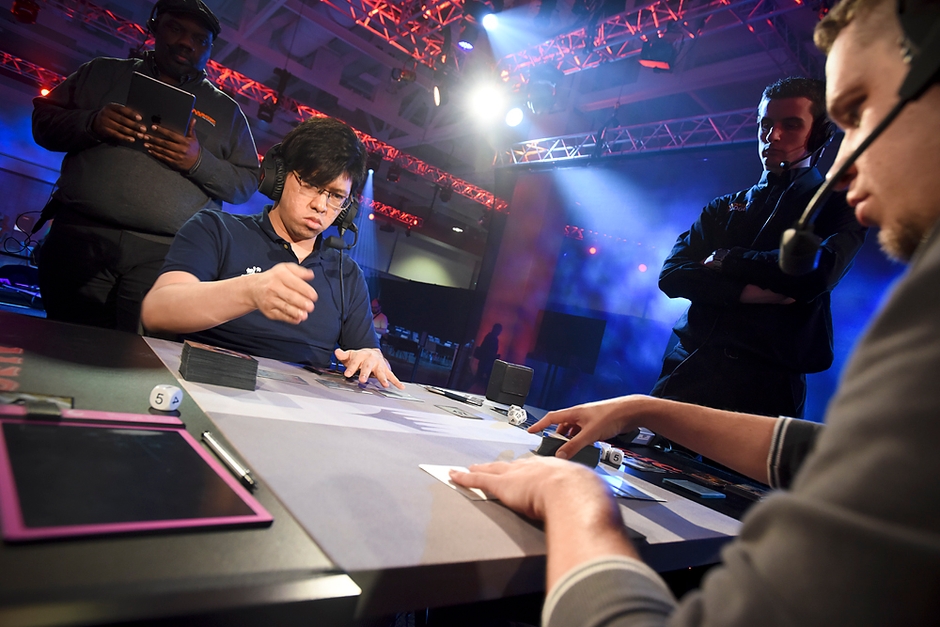 初日となる5月12日(金)にブースタードラフト3回戦、続いてスタンダード5回戦が行われ、4勝4敗以上の成績を残した239名が2日目のトーナメントに進出。翌日5月13日(土)にはさらにブースタードラフト3回戦、続いてスタンダード5回戦の試合を経て上位8人が決定。この厳しい戦いを日本の行弘 賢選手と渡辺 雄也選手は、それぞれ2位と8位で勝ち抜き、決勝トーナメントに進出しました。