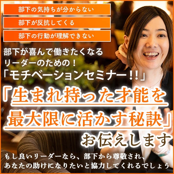 仲間・部下の才能を活かし、 組織に貢献できるリーダーシップを引き出す 「モチベーションセミナー」を東京・新宿で7月27日に開催!