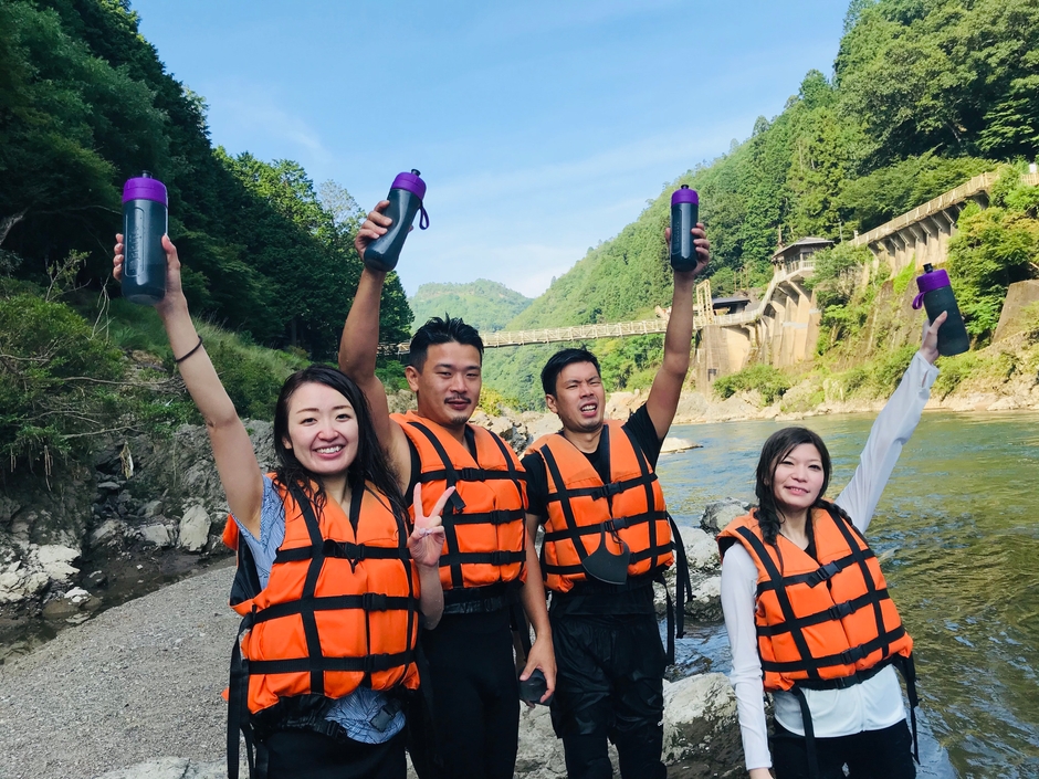 その先駆けとなった当組合では「ペットボトルごみの削減」を徹底する為、「マイボトル・マイカップ持参」で乗り込む「保津川エコラフティングチャレンジ」を実施しています。