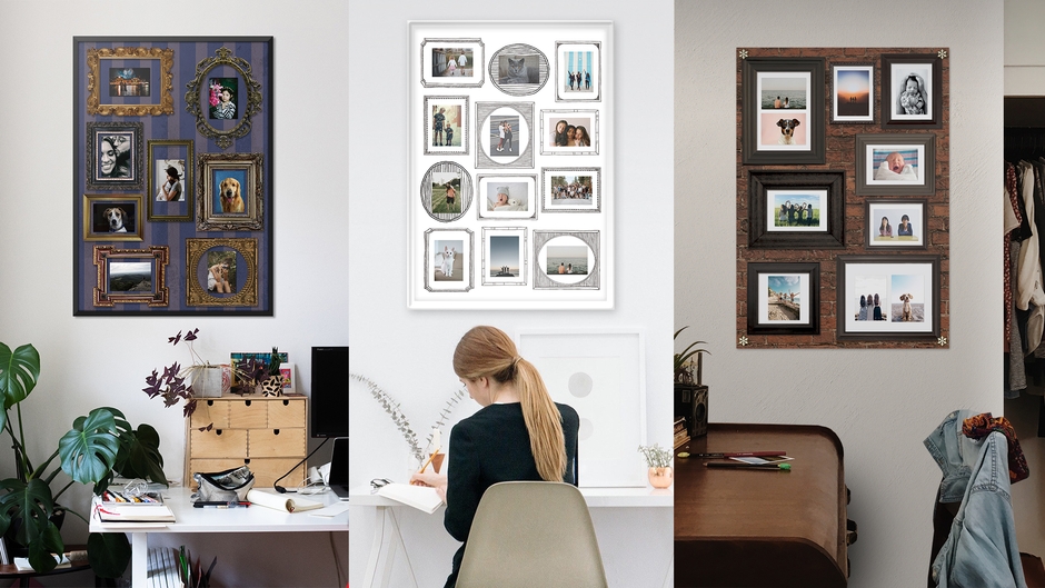 ●写真をたくさん貼りたい場合、「写真たて」をたくさん用意しないといけないが、「シャシンカベのポスター」は1枚あればたくさん貼ることができるのでお部屋もスッキリ。 ※デザインによって貼れる枚数が違います