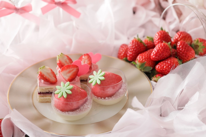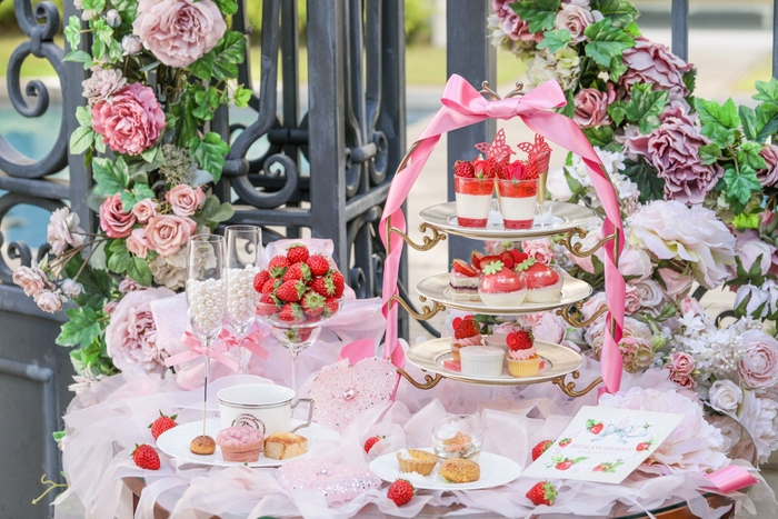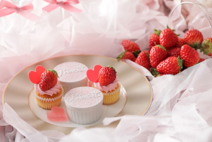 “いちごの甘酸っぱい匂いに誘われてプリンセス気分でいちご畑を散歩する”をテーマに作られたスイーツの数々。