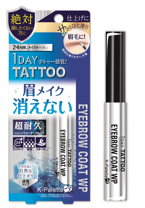 そこでK-パレットから、「落ちない」をコンセプトにした1DAY TATTOOシリーズから、眉を強力コートするアイテムが登場します。眉メイクの仕上げにサッとひと塗りするだけで、汗・皮脂・水から完全シャットアウト。アクリル系樹脂(被膜剤)の透明コーティング効果が眉をしっかりコートし、プールやジムなどアクティブな運動をどんなにしても、眉メイクが1日消えずにキープ(※2)します。