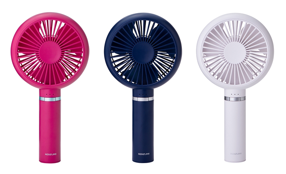 理美容器具などの自社商品の企画・開発と、国内外のメーカーブランド商品を取扱い、販売する代理店業を展開する小泉成器株式会社は、持ち運びできるミニサイズの携帯用扇風機「ハンディファン」(KPF-0993/P・A・W)を4月より販売開始しましたので、お知らせします。
