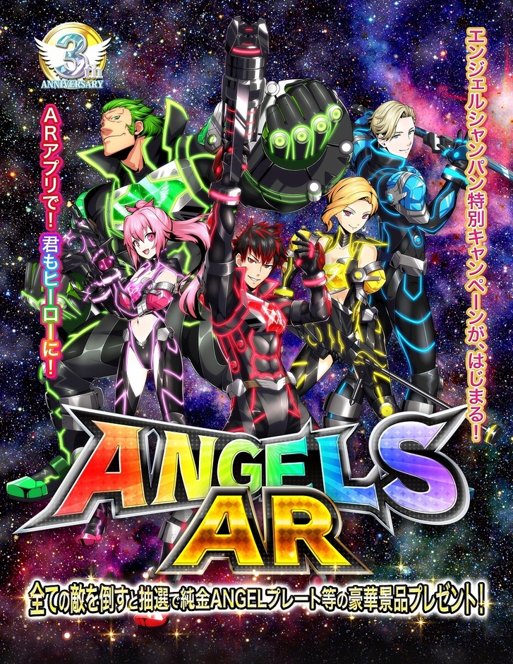 ARアプリ「ANGELS AR(エンジェルズ エーアール)」は、“ANGEL CHAMPAGNE HALO”シリーズのシャンパンボトルの羽のラベルに、ARアプリを起動させたスマートフォンをかざすことで、HALOの5色カラーにちなんだ、RED、BLUE、GREEN、YELLOW、PINKの個性豊かな5人のヒーローキャラクター達と悪役が出現し、スマートフォン上でオリジナルアニメとバトルをお楽しみ頂けるARサービスです。