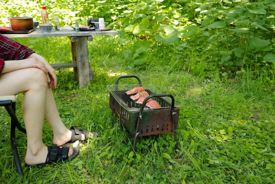 次に、冷凍で発送するのでキャンプ地での食材として扱いやすい。冷凍した一夜干しを発泡スチロールに入れて約1、2時間で解凍できます。丁度キャンプ地に到着した頃には溶けていますので、炭を焚いてただ焼くだけで美味しくいただけます。肉にも負けないほどのしっかりとした味わいです。