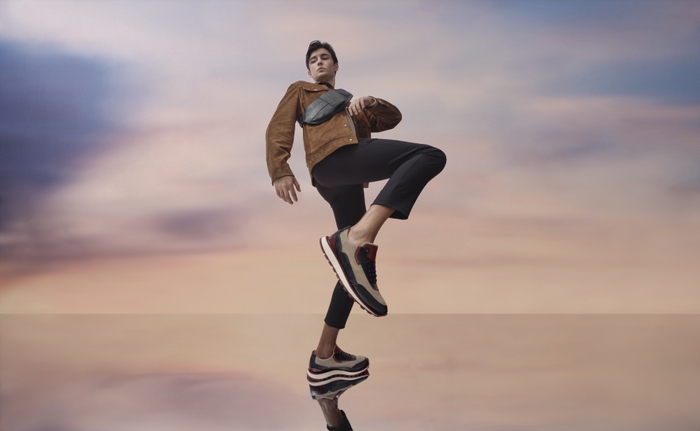 「モエナカーフスキン&スエードスニーカー」は、大胆なカッティングのアンティーク仕上げのカーフスキンと、ベージュ×ネイビー×ボルドーのコントラストカラーのスエードが組み合わされています。このスニーカーは、ボロネーゼ サケット*1で作られており、比類のない快適さと柔軟性を備えています。ホワイトとアメデオ テストーニのアイコンカラーであるランブルスコをミックスしたラバーラグソールを採用しています。インソールには、優れた軽量性を象徴するピウマのアイコンを配し、デザイン性をさらに高めています。