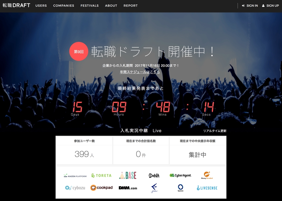 ITエンジニア限定の競争入札型転職サービス 「第9回 転職ドラフト」本日11/1(水)より開催!