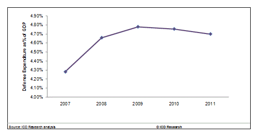 しかし、世界的な金融危機がもたらした財政的な制約によって、米国の防衛予算は、これまでの年平均成長率(CAGR) 4.19%から、今後は0.63%に減速する見通しです。