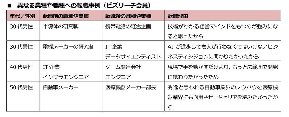 異なる業種や職種への転職事例(ビズリーチ会員)
