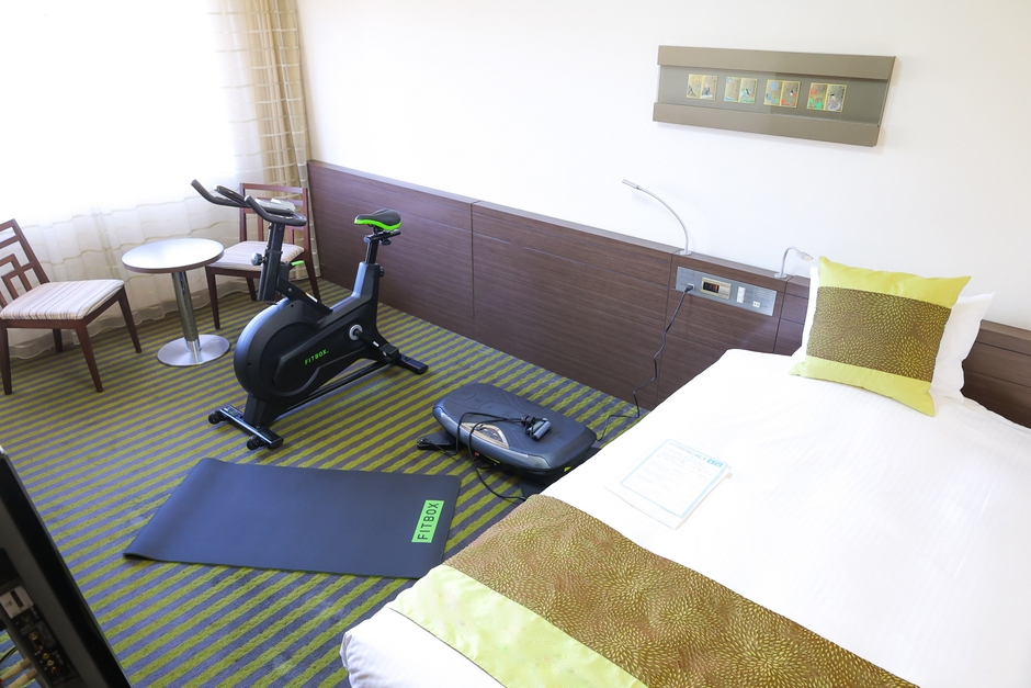 本プランは、「3Dバランスブレード」とフィットネスバイク「FITBOX」を設置したお部屋でお過ごしいただける宿泊プランです。ご自分の都合に合わせて客室滞在中は時間無制限でトレーニングを進めることができます。「3Dバランスブレード」はパーソナルジムのライザップが監修し、トータルボディケアブランドの「ドクターエア」とコラボレーションしたマシンです。足腰を中心としたトレーニングができ、音楽と同期させると、曲調に合わせて振動モードが変化し、楽しみながら続けることができます。フィットネスバイク「FITBOX」は、本格的なプロフェッショナル用のバイクで、音が静かなのが特徴です。