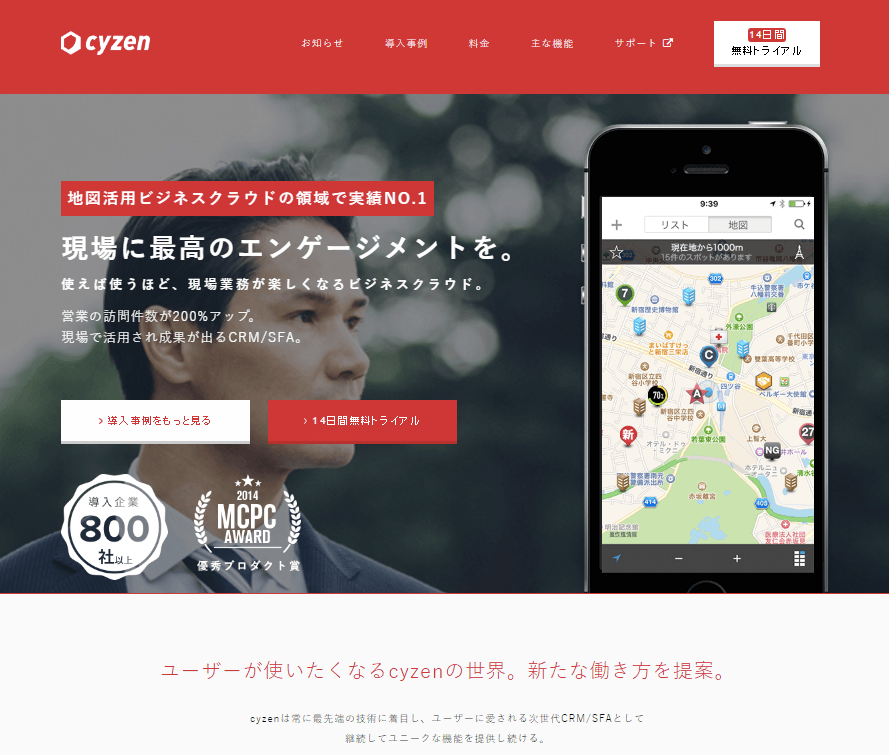レッドフォックスは、「cyzen」によって、「現場に最高のエンゲージメントを」もたらします。「cyzen」は、位置情報を活用したビジネスクラウドで、働く人のモチベーションを向上させ、仕事、会社、お客様へのエンゲージメントを強くし、クライアント様の事業を成功に導きます。