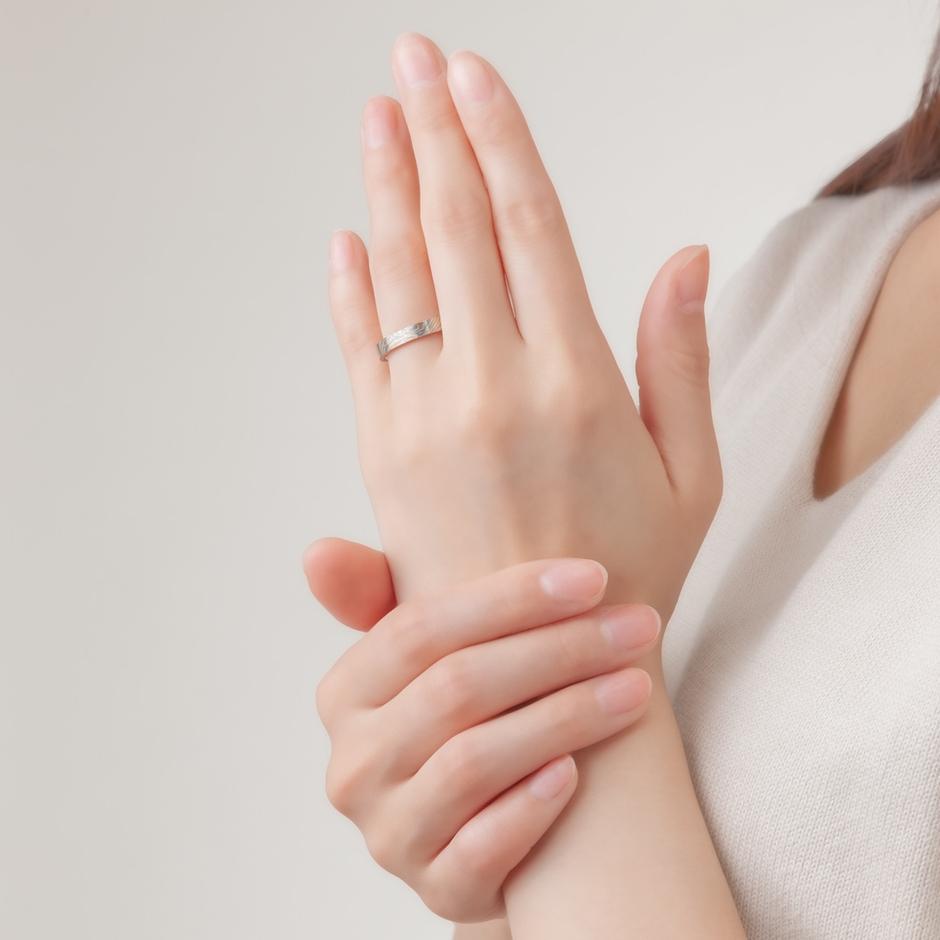 金属の組み合わせは、プラチナ・シルバーの「白樺(しらかば)2色」、プラチナ・K18ホワイトゴールド・シルバーの「白樺3色」、プラチナ・K18ピンクゴールド・シルバーの「朱桜(しうりざくら)」、プラチナ・K18イエローゴールド・シルバーの「いちょう」の4種類から選べます。