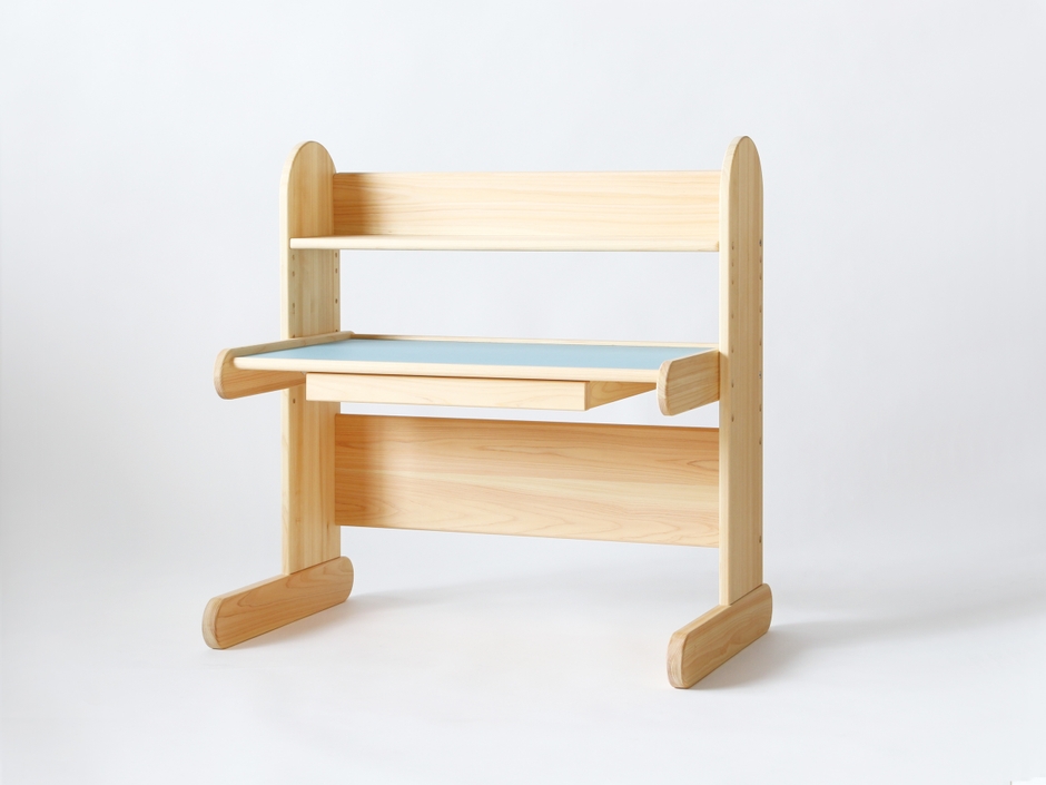 キントデスクは小学校の机と同じJIS規格に完全対応しているため、成長する子どもに合わせた高さ調節ができ、体に負担をかけない健やかな学習環境を実現します。その他、落下防止のスライドレール付き引き出し、ケガ防止の丸みを帯びたデザインを採用等、機能面においても「安心・安全」を確保しました。