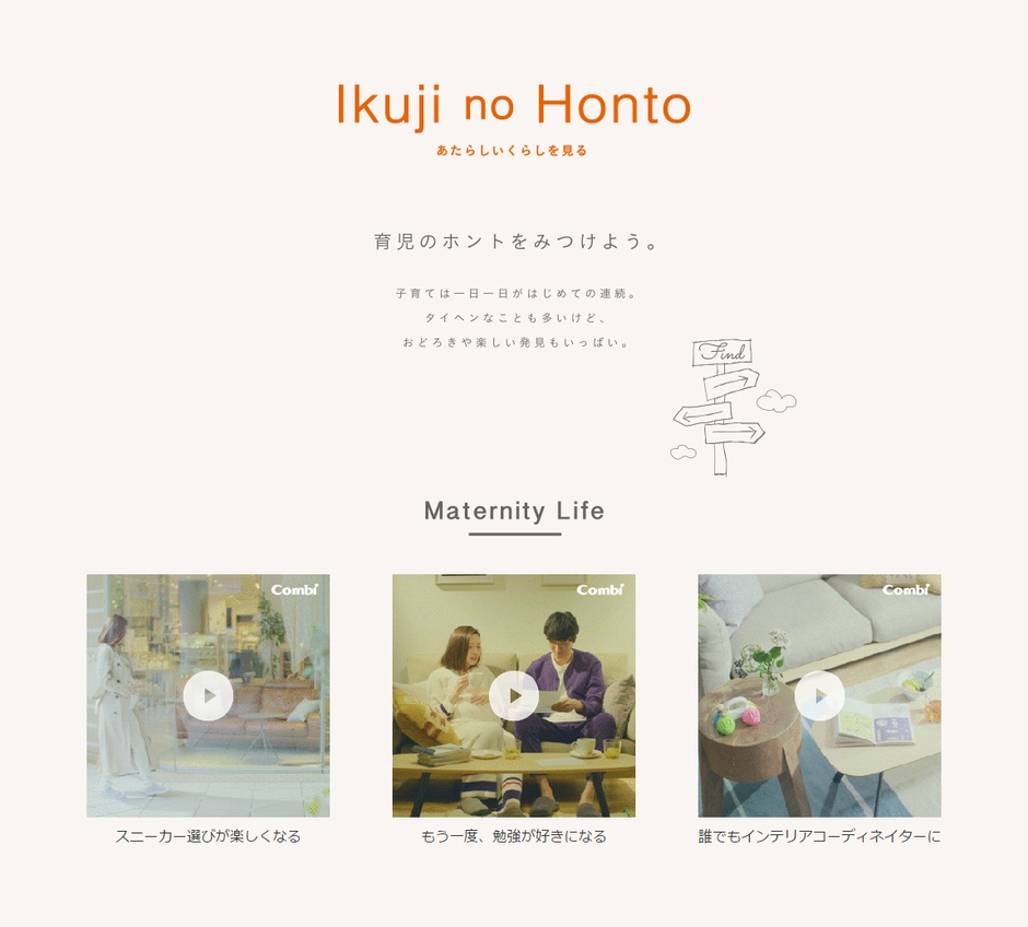 製品が多様化し、情報過多とも言われる現代において、ベビー用品を選ぶことが益々複雑になっています。これから子育てを始めるママ・パパが、単に製品を理解していただくだけでなく、コンビとともに「あたらしいくらし」をイメージしていただくために、15本のショートムービーをご用意しました。
