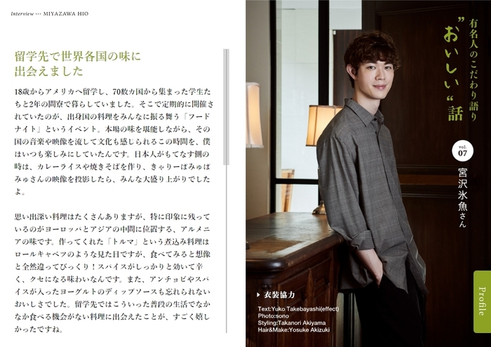 無類の貝好き俳優・宮沢氷魚さん登場! 「タベサキ」2019年9月号公開