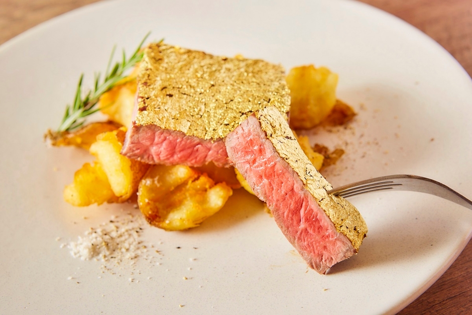 金曜日限定!秋葉原で『金肉ステーキ』777円で提供 金箔で包み込まれた牛モモ肉で“花金”をゴージャスに!