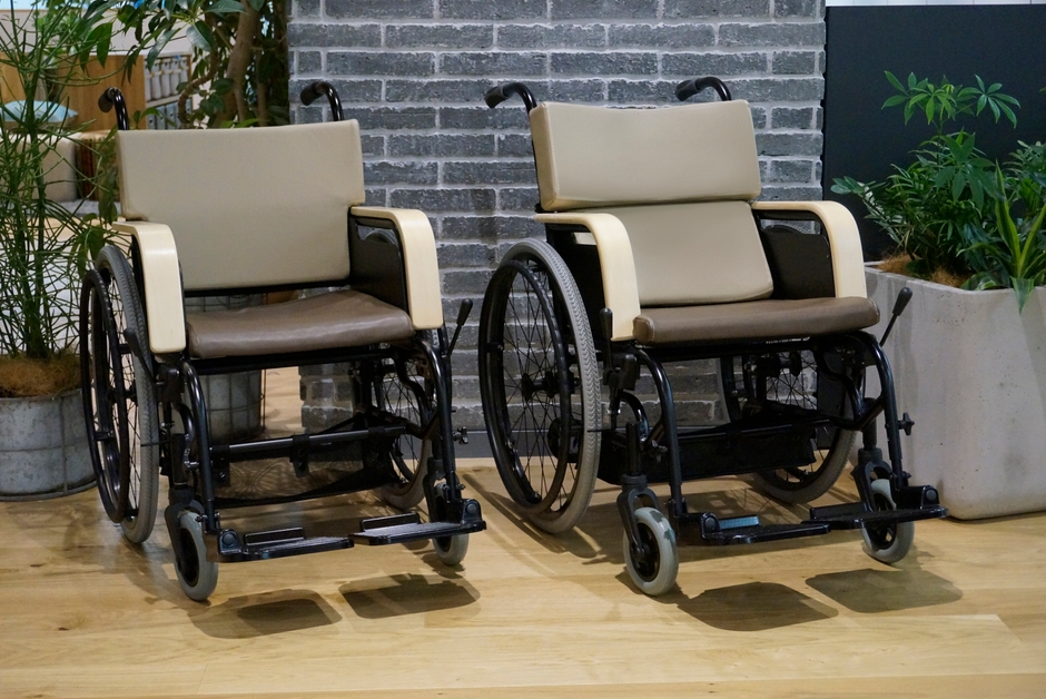 本商品は、座る力の弱い高齢者の身体の特徴に合わせた設計で、座位姿勢のくずれを防ぎ、長時間快適に過ごすことができる新しいタイプの車いすです。