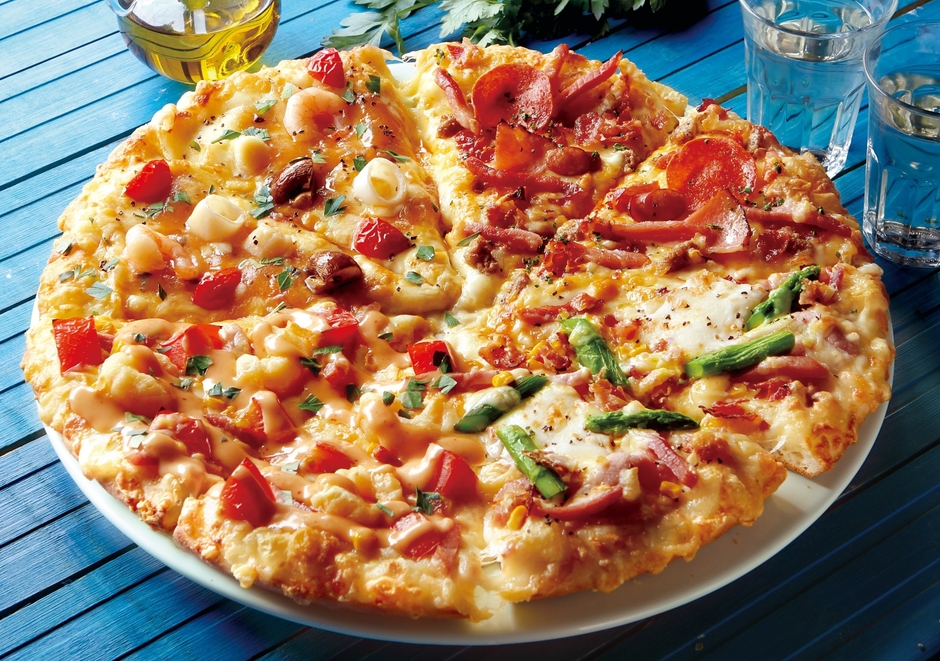 夏の新商品をピザーラお届け!! みんなで楽しめる夏クォーターが3商品!! 「よくばり」 「エビマヨ」 「絶品グルメ」!!