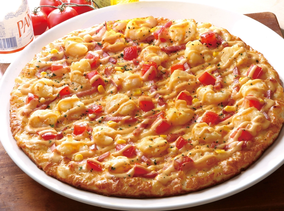 『ピザーラ エビマヨ』は、2002年に登場以降人気を博し、すっかりピザーラの夏の定番メニューになりました。ふっくらとした衣とプリっとしたエビの食感がクセになるエビフリッターに、甘みと酸味のハーモニーが絶妙な特製オーロラソースがマッチした一品です。